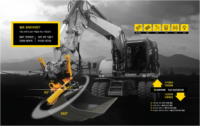 M/S JUHYUN CO LTD, South Korea was established in year 2014 with the concept to overcome the problem faced by the contractors to perform construction activities with the excavators. The invention of TILT ROTATORS changed the overall mindset of the contractors.